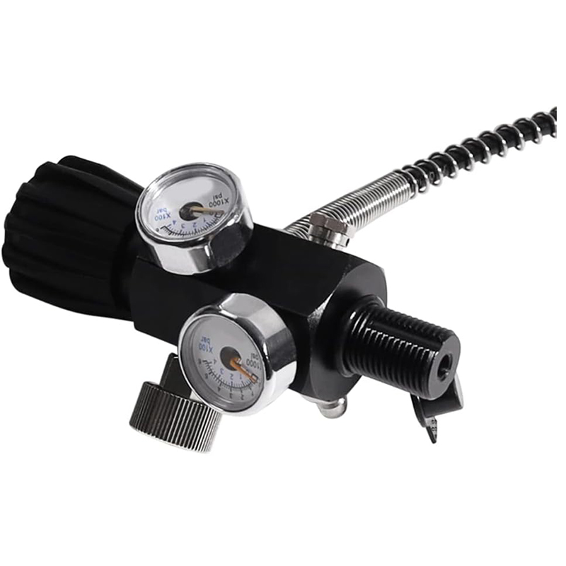 Urządzenie umożliwia precyzyjne ustawienie i kontrolowanie ciśnienia roboczego gazu, a dwa czytelne manometry pozwalają na jednoczesny odczyt ciśnienia w butli oraz ciśnienia wyjściowego. Reduktor wyposażony jest również w zawór precyzyjny (iglicowy), co umożliwia dokładne dozowanie gazu – szczególnie ważne w zastosowaniach akwarystycznych przy podawaniu CO2 do roślin. Elastyczny przewód wysokociśnieniowy w stalowym oplocie zwiększa bezpieczeństwo i trwałość systemu, a estetyczna, czarna obudowa nadaje całości nowoczesnego wyglądu.