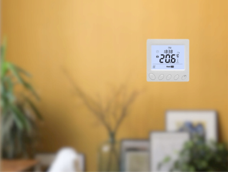 Wyposażony w podświetlany ekran LCD o przekątnej 3,2 cala, regulator zapewnia wyraźny odczyt aktualnej temperatury, godziny oraz trybu pracy. Intuicyjny interfejs ułatwia codzienną obsługę.