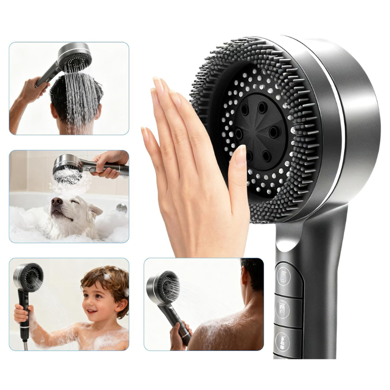 dbając o skórę i włosy. Ergonomiczna forma, silikonowa szczotka masująca oraz funkcja zatrzymywania wody sprawiają,