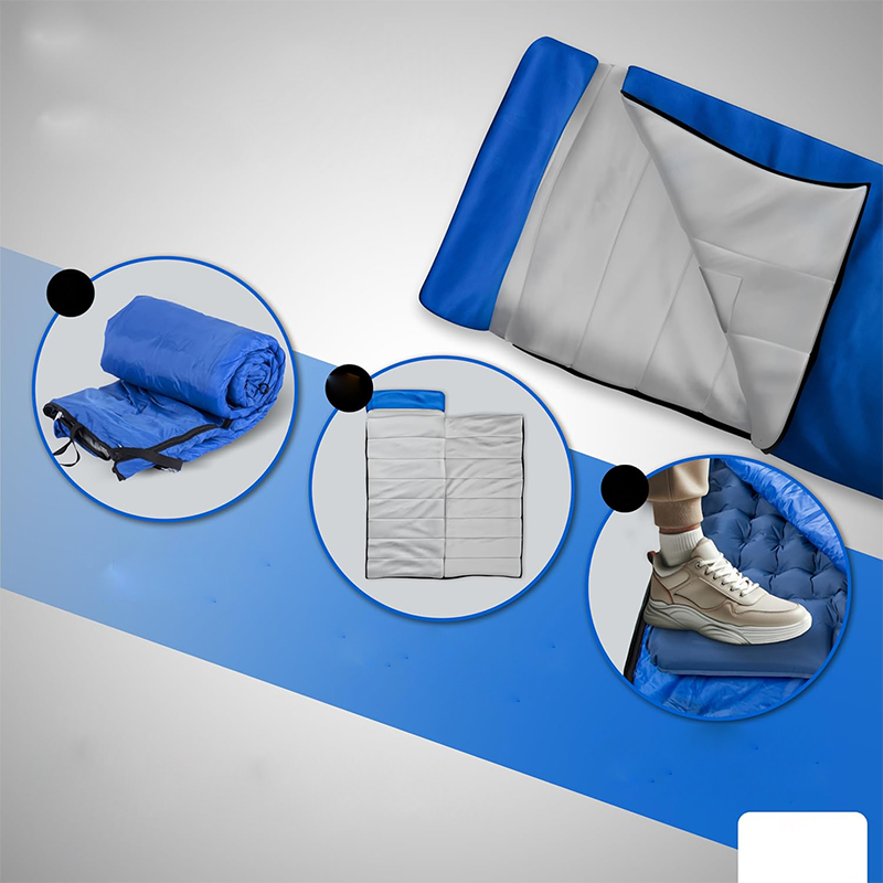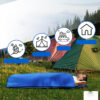 - Konstrukcja 2w1 – połączenie śpiwora z materacem zwiększa wygodę użytkowania.