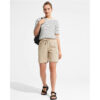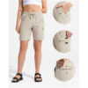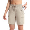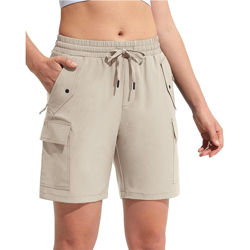Praktyczne damskie spodenki trekkingowe typu cargo w uniwersalnym beżowym kolorze, idealne na aktywności outdoorowe oraz codzienne użytkowanie w ciepłe dni. Sportowy krój, lekka konstrukcja i liczne kieszenie sprawiają, że spodenki doskonale sprawdzą się podczas trekkingu, spacerów, podróży czy wycieczek. Ultra-lekka i przewiewna tkanina skutecznie odprowadza wilgoć, pomagając utrzymać optymalny komfort termiczny nawet podczas intensywnego ruchu. Elastyczny pas z regulacją na zewnętrzny sznurek zapewnia wygodne i stabilne dopasowanie do sylwetki.