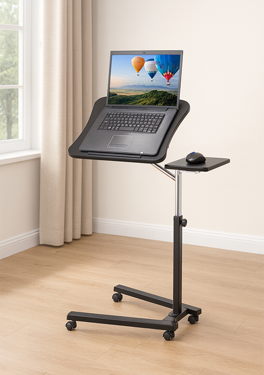 Ten wielofunkcyjny, mobilny stolik pod laptop to idealne rozwiązanie dla osób, które cenią sobie wygodę i ergonomię pracy w domu. Dzięki regulowanej wysokości, odchylanemu blatowi i osobnej podstawce na myszkę możesz stworzyć komfortowe stanowisko pracy na sofie, fotelu, przy łóżku lub nawet w pozycji półleżącej.
