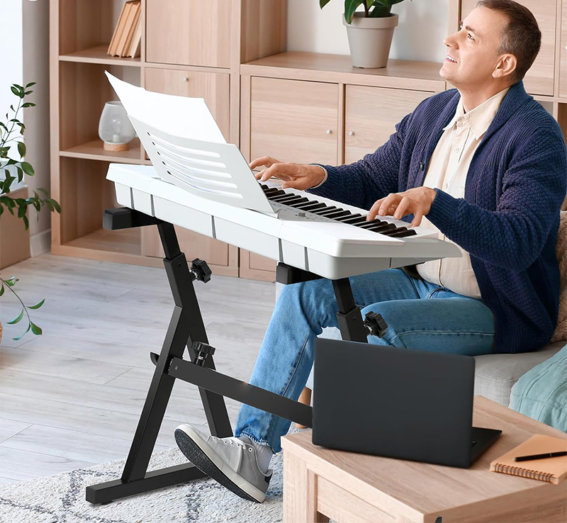Stabilny i solidny regulowany stojak pod keyboard to niezastąpione akcesorium dla muzyków – zarówno profesjonalistów, jak i początkujących. Wykonany z wysokiej jakości metalu, zapewnia wyjątkową trwałość, stabilność i bezpieczeństwo użytkowania nawet przy intensywnej grze. Dzięki udźwigowi aż do 110 kg z łatwością utrzyma nawet większe instrumenty muzyczne, syntezatory czy stacje robocze.