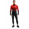 Męski strój rowerowy kolarski w wyrazistym czerwonym kolorze to funkcjonalny komplet zaprojektowany z myślą o dłuższych trasach, treningach oraz rekreacyjnej jeździe. Zestaw składa się z koszulki z długim rękawem oraz długich spodni z szelkami i wkładką, co zapewnia stabilne dopasowanie i wysoki komfort podczas jazdy. Oddychający i szybkoschnący poliester skutecznie odprowadza wilgoć, pomagając utrzymać suchą skórę nawet przy intensywnym wysiłku. Wiatroszczelna konstrukcja zwiększa komfort w chłodniejsze dni, a elementy odblaskowe poprawiają widoczność po zmroku. Wydłużony tył koszulki dobrze układa się w pozycji kolarskiej.
