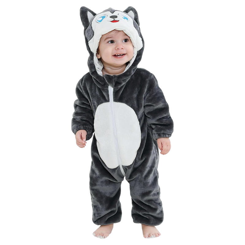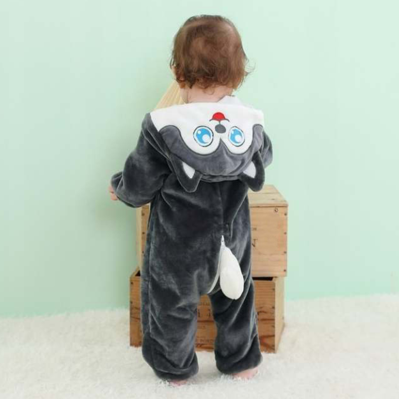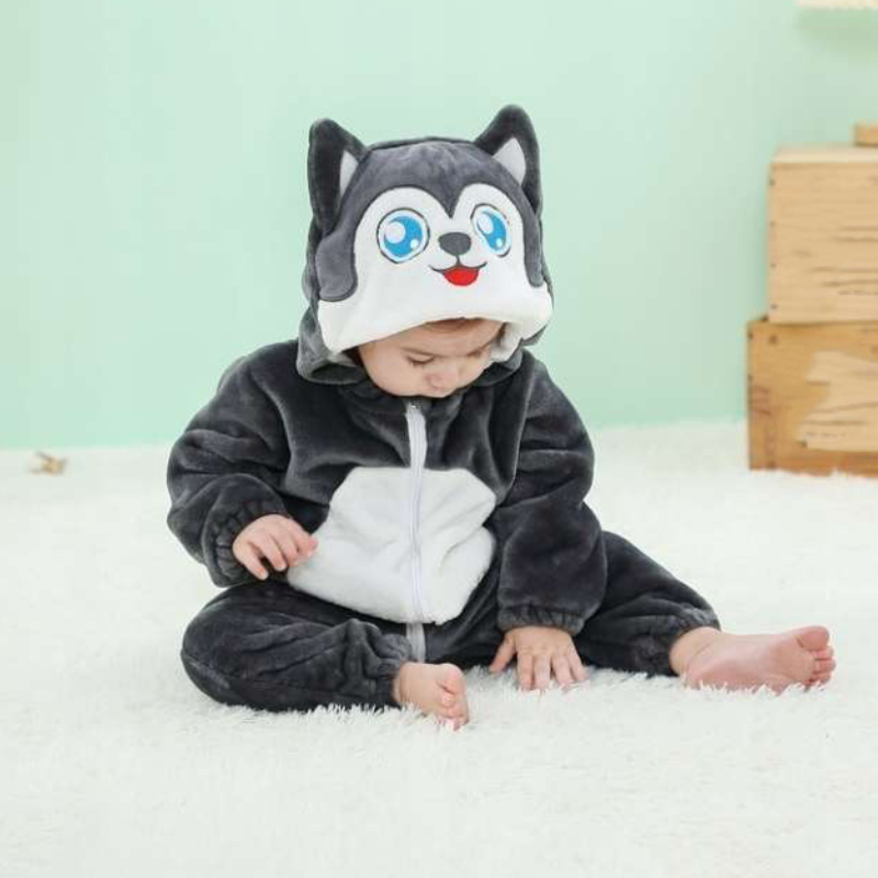 Piżama kombinezon dziecięcy husky szary biały z uszkami 68/74