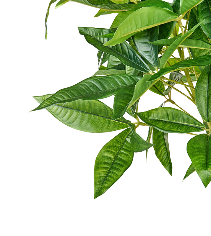 Drzewko wykonane jest z wysokiej jakości materiału syntetycznego, który wiernie odwzorowuje strukturę liści i pnia. Zachowuje świeży wygląd przez cały rok, nie wymaga podlewania, nawożenia ani dostępu do światła.