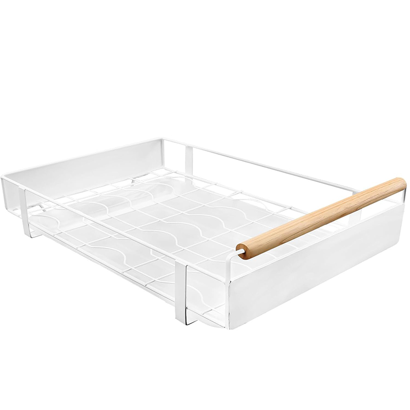 Praktyczna szuflada wysuwana do szafki to idealne rozwiązanie do organizacji przestrzeni w kuchni. Ułatwia dostęp do przechowywanych przedmiotów, eliminując konieczność sięgania w głąb szafki. Dzięki zastosowaniu płynnych prowadnic organizer działa cicho i lekko, zapewniając komfort użytkowania na co dzień. Nowoczesny design w białym kolorze oraz drewniany uchwyt sprawiają, że produkt świetnie komponuje się z różnymi stylami wnętrz.
