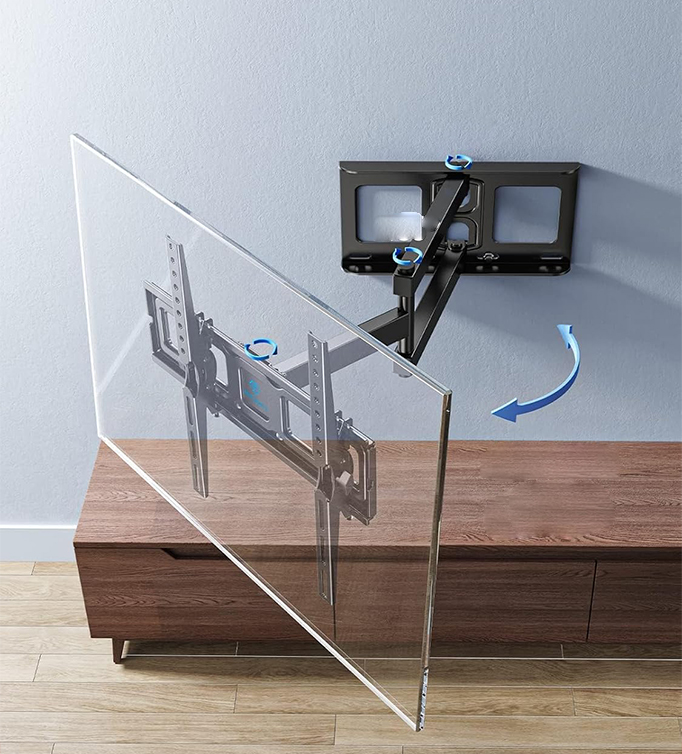 Solidny i funkcjonalny uchwyt ścienny do telewizora 26–60 cali to idealne rozwiązanie dla osób, które chcą cieszyć się maksymalnym komfortem oglądania, jednocześnie oszczędzając przestrzeń w salonie, sypialni czy biurze. Dzięki regulowanej konstrukcji uchwyt pozwala dopasować pozycję ekranu do własnych potrzeb – możesz obracać, pochylać i wysuwać telewizor, aby uzyskać najlepszy kąt widzenia.