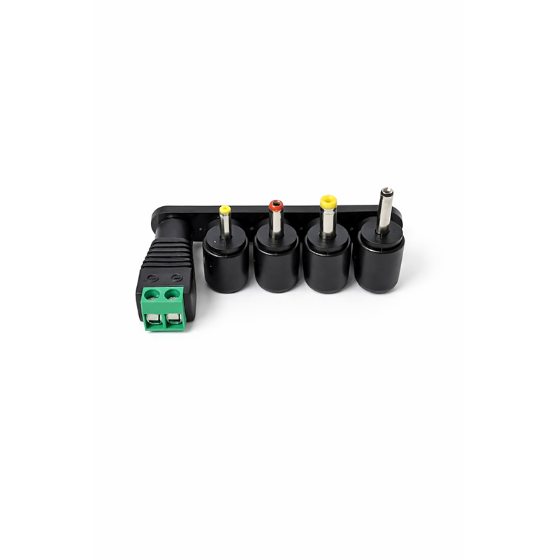 W komplecie znajduje się kilka popularnych końcówek DC, które umożliwiają dopasowanie zasilacza do różnych urządzeń: