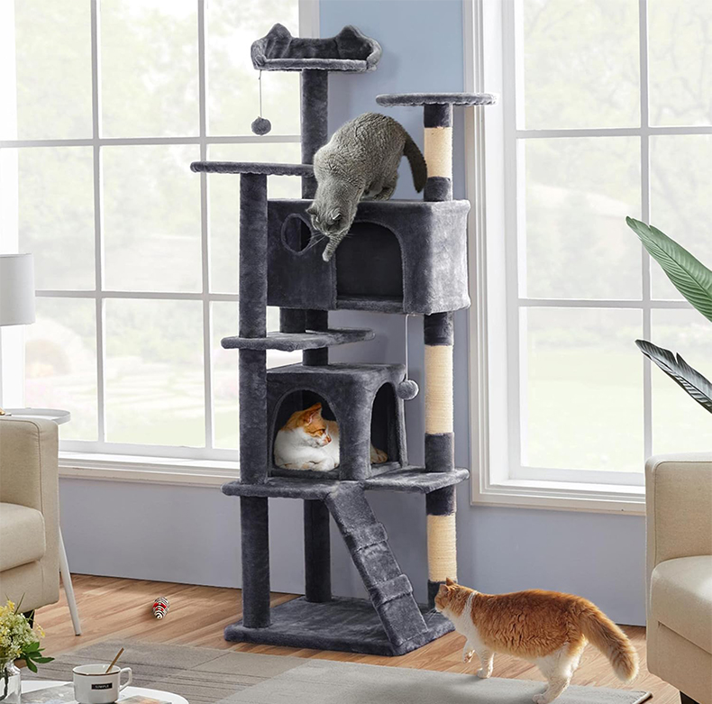 Wielopoziomowy drapak dla kota z legowiskami i budkami