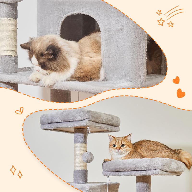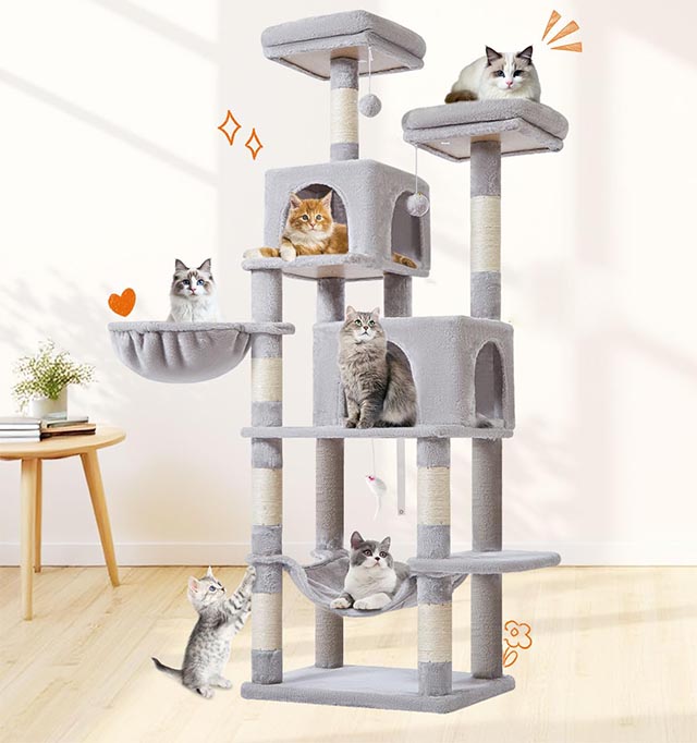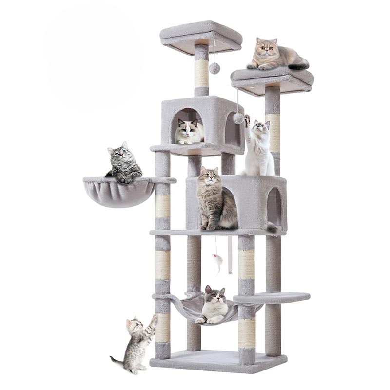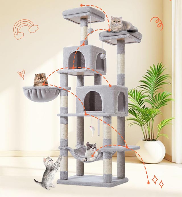 - Wysoka konstrukcja 170 cm: wiele poziomów pozwala kotu wspinać się, bawić i odpoczywać na różnych wysokościach.