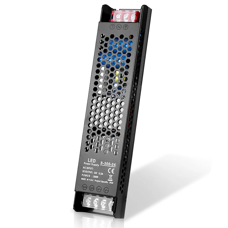 Wydajny i kompaktowy zasilacz impulsowy 24 V DC o mocy 300 W został zaprojektowany do zasilania instalacji LED oraz innych urządzeń prądu stałego o dużym poborze mocy. Smukła metalowa obudowa umożliwia montaż nawet w ograniczonej przestrzeni, a wbudowany wentylator zapewnia stabilną i bezpieczną pracę przy wysokim obciążeniu.
