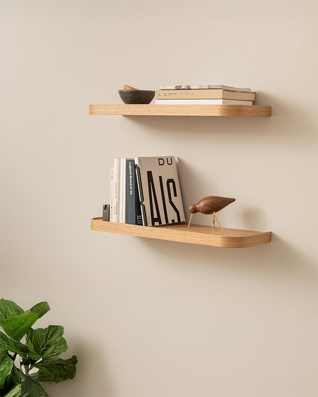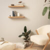 Półki zostały wykonane z trwałego materiału drewnianego, co zapewnia im wysoką stabilność oraz odporność na codzienne użytkowanie. Każda półka wytrzymuje obciążenie do 25 kg, dzięki czemu bez problemu pomieści książki, dekoracje, rośliny czy akcesoria domowe.