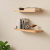 Elegancki i funkcjonalny zestaw dwóch drewnianych półek ściennych to idealne rozwiązanie do nowoczesnych, skandynawskich oraz klasycznych wnętrz. Naturalne drewno w połączeniu z prostą formą sprawia, że półki doskonale komponują się zarówno w salonie, sypialni, kuchni, jak i biurze.