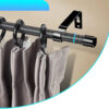 Przed powieszeniem zasłon upewnij się, że drążek jest prawidłowo wsunięty w uchwyty i stabilnie zamocowany.