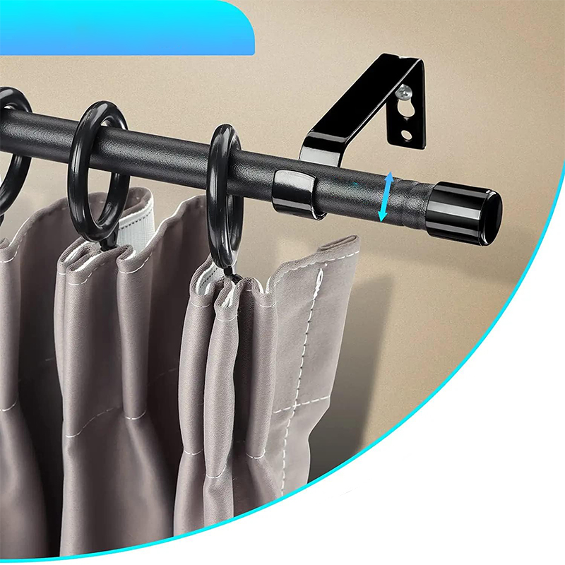 Zestaw dwóch regulowanych drążków do zasłon w kolorze czarnym to trwałe i estetyczne rozwiązanie do zawieszenia firan oraz zasłon w różnych pomieszczeniach. Dzięki zakresowi regulacji od 76 do 198 cm każdy drążek można łatwo dopasować do szerokości okna, bez konieczności docinania.