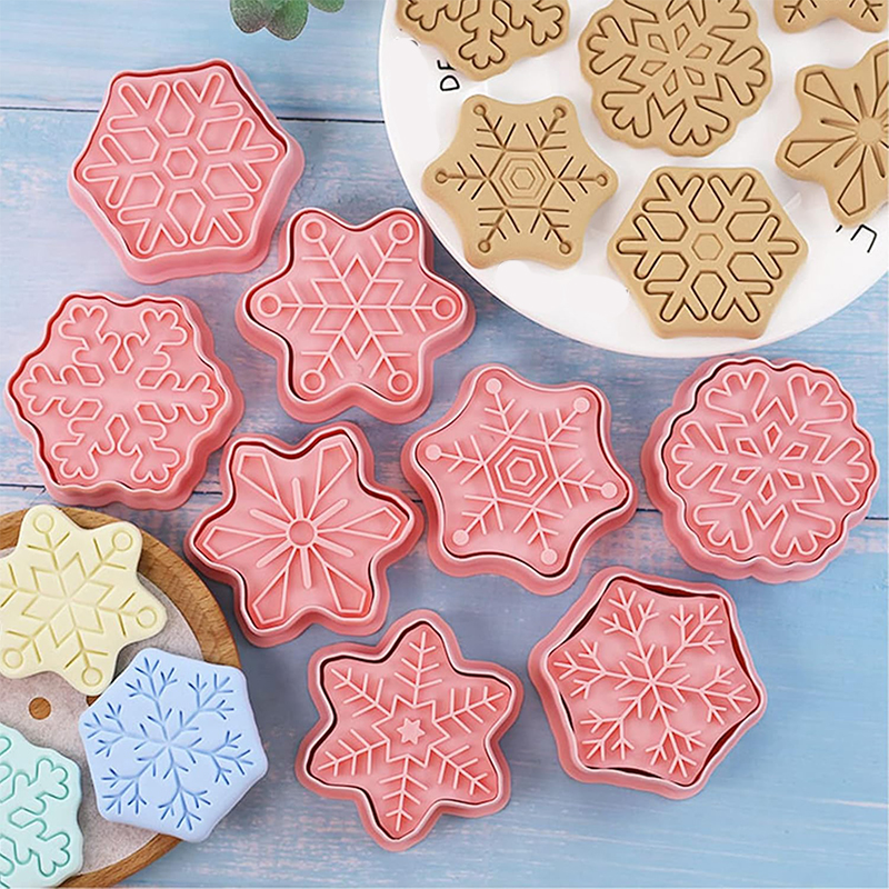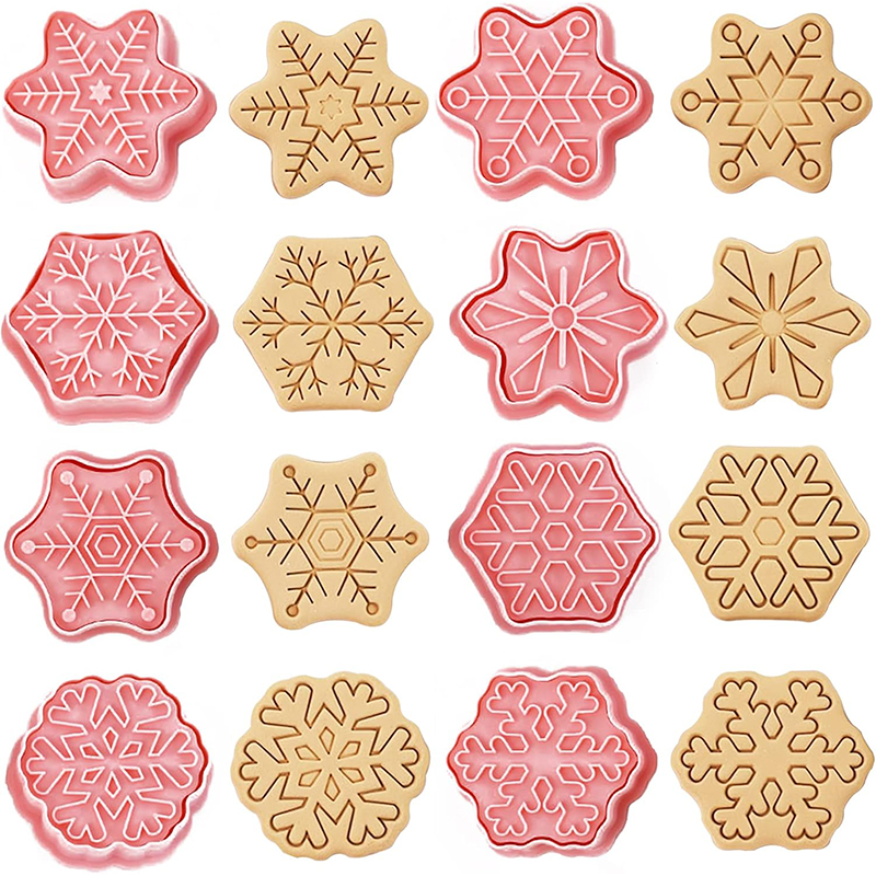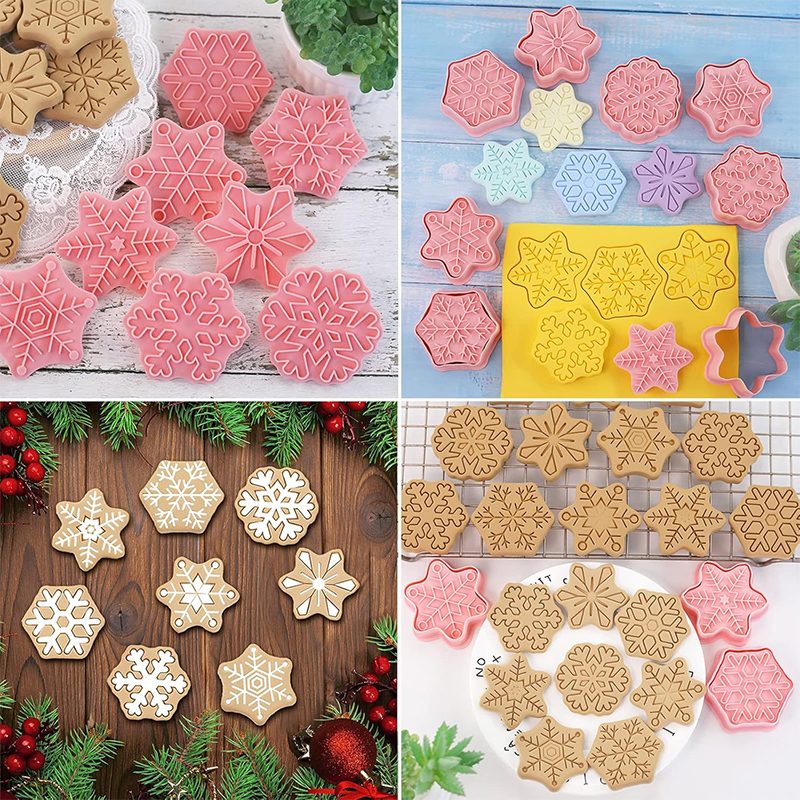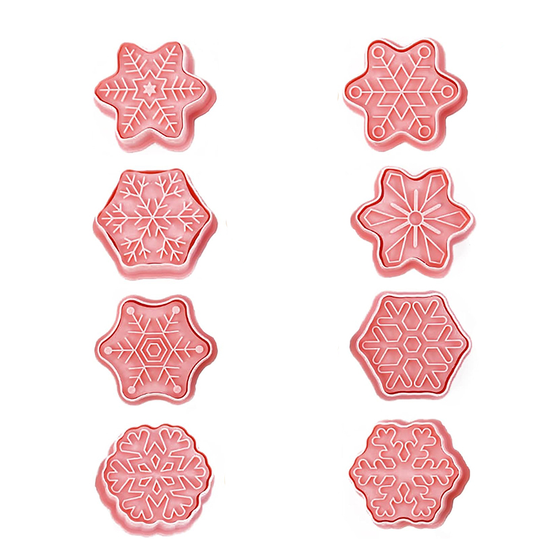 - Zestaw 8 foremek w kształcie płatków śniegu – każdy wzór inny, z pięknymi, zimowymi detalami.