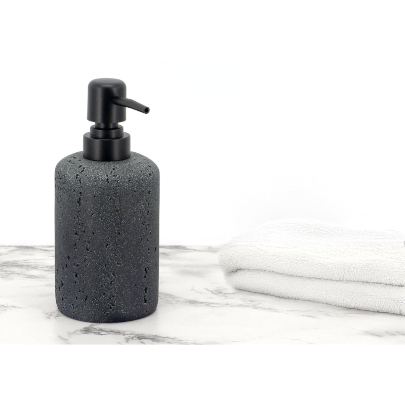 Zestaw akcesoriów łazienkowych 4 sztuki dozownik kubek czarny kamień