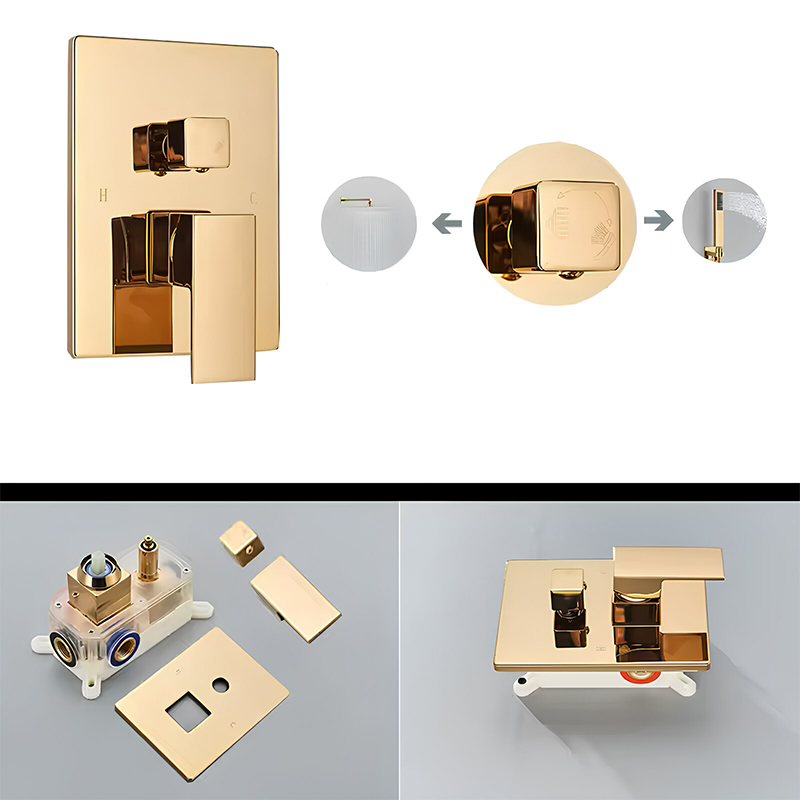Ekskluzywny zestaw prysznicowy podtynkowy w kolorze złotym to idealna propozycja dla osób ceniących nowoczesny design i najwyższą jakość wykonania. Dzięki minimalistycznej formie i wykończeniu w eleganckim odcieniu złota, zestaw ten doskonale wpisuje się zarówno w nowoczesne, jak i klasyczne aranżacje łazienek.