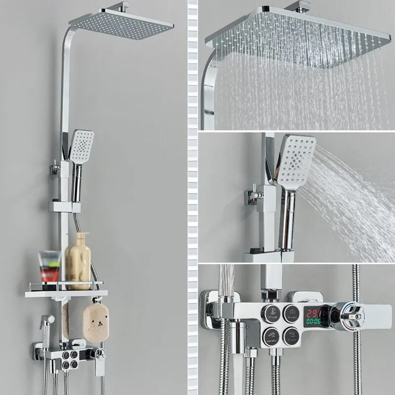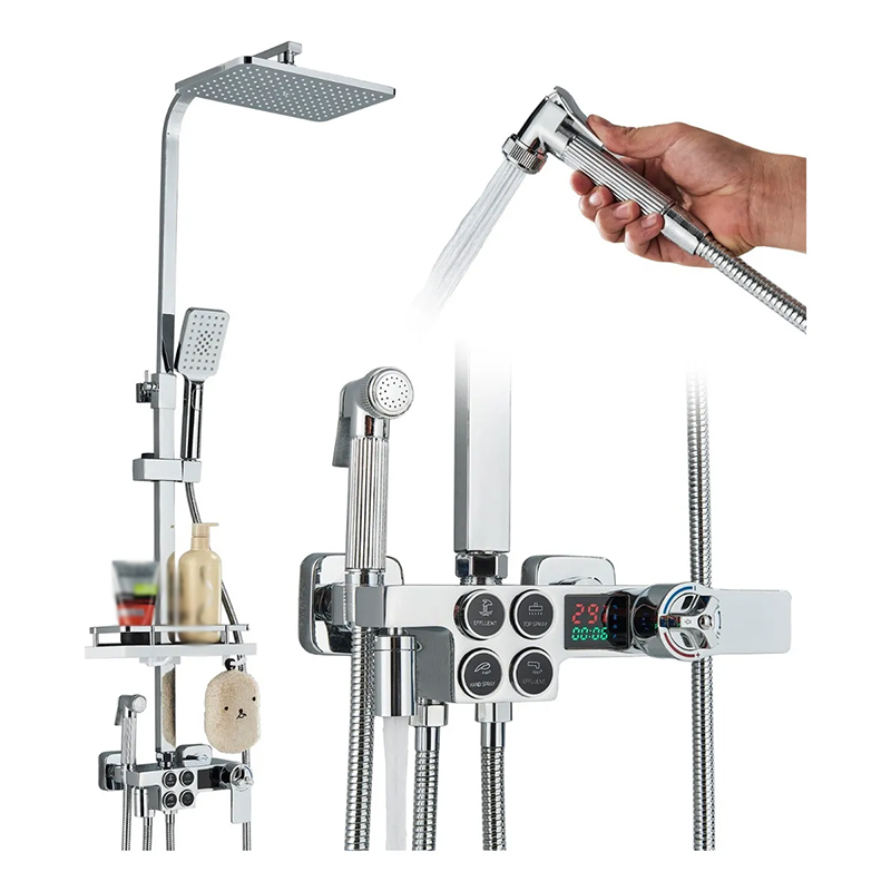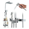 Nowoczesny zestaw prysznicowy z deszczownicą, słuchawką i bidettą to kompletny system natryskowy, który zapewnia maksymalny komfort kąpieli oraz funkcjonalność w codziennym użytkowaniu. Eleganczne, srebrne wykończenie i minimalistyczna forma idealnie pasują do każdej łazienki – zarówno nowoczesnej, jak i klasycznej.