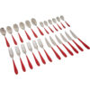 Nowoczesny zestaw sztućców Bugatti to doskonałe połączenie elegancji i praktyczności. Czerwone uchwyty nadają wyjątkowego charakteru każdemu nakryciu stołu, podkreślając styl zarówno codziennych posiłków, jak i uroczystych okazji.