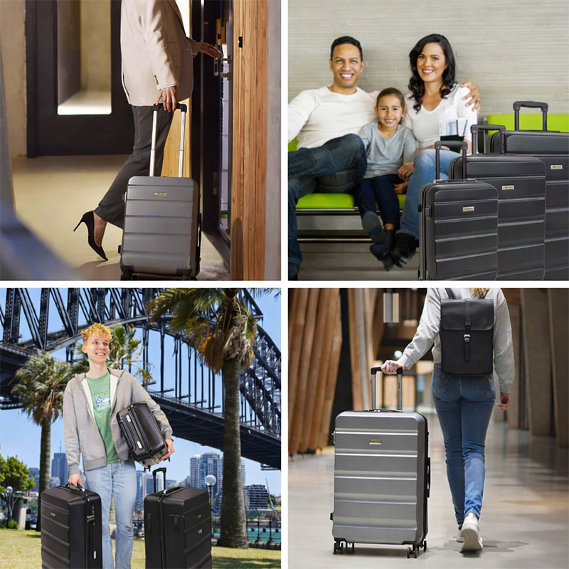 - Uniwersalny design: Czarny kolor oraz nowoczesne, minimalistyczne wykończenie sprawiają, że zestaw prezentuje się elegancko i ponadczasowo. Walizki doskonale sprawdzą się w podróżach służbowych, wakacyjnych oraz rodzinnych.