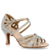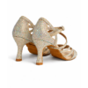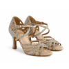 Eleganckie damskie buty taneczne w złotym kolorze to idealny wybór dla kobiet, które chcą połączyć styl z wygodą na parkiecie. Dzięki efektownemu wykończeniu z błyszczącymi kryształkami przyciągają wzrok i pięknie prezentują się w ruchu. Stabilny obcas typu flare zapewnia pewność każdego kroku, nawet podczas intensywnych treningów i występów. Przemyślana konstrukcja pasków doskonale dopasowuje się do stopy, podkreślając jej linię. Miękka wkładka zwiększa komfort użytkowania, nawet przez wiele godzin. To model stworzony z myślą o tańcach latynoskich i wieczorowych okazjach.