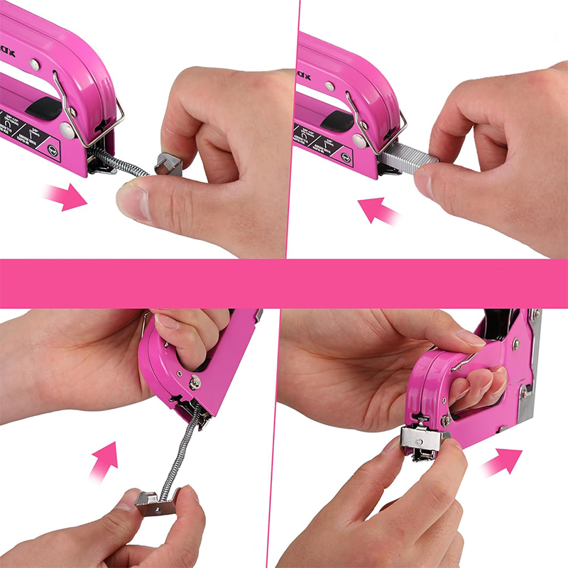 urządzenie pozwala precyzyjnie dopasować moc zszywania do rodzaju materiału. Różowa obudowa nadaje zszywaczowi nowoczesny, wyróżniający się wygląd, a jednocześnie zachowuje pełną funkcjonalność i trwałość konstrukcji.